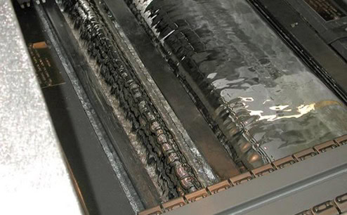 Fluxo de soldagem sem ativação ao longo dos pré-aquecedores: Causado por um perfil térmico mau ajustado, quando o fluxo de solda não se ativa adequadamente ele não cumpre suas funções de limpeza das superfícies a serem soldadas, transferência de calor e redução da tensão superficial da solda líquida durante o contato entre a placa e a solda no tanque. A ausência destas propriedades ativadas, irá favorecer a formação de curtos de solda.