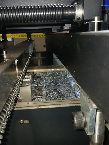 Tanque de solda contaminado ou com excesso de borra: Afetando a qualidade da liga de solda presente no tanque, o excesso de borra no tanque traz consigo a presença de contaminantes oriundos do processo de oxidação do estanho em contato com o ar da atmosfera e com as placas que estão sendo soldadas. Estes contaminantes e outros elementos, como o cobre que naturalmente virá da difusão entre estanho da solda e cobre dos pads e terminais, alteram a composição da liga de solda no tanque e alteram propriedades como tensão superficial e viscosidade de liga, potencializando a formação de curtos de solda.