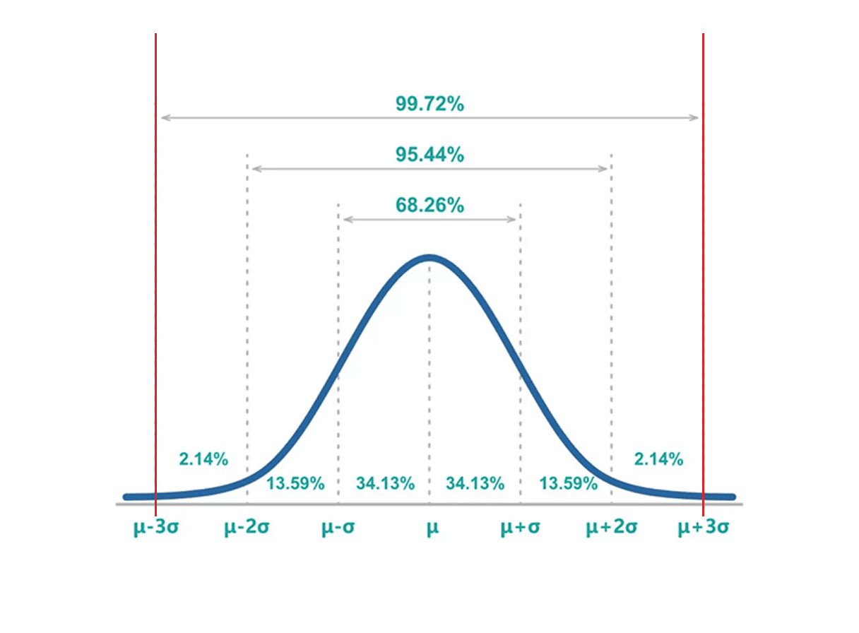 Para estudar esse comportamento, Shewhart coletou dados de uma máquina operando em condições normais e utilizou histogramas para analisar seus padrões. Com base na média e no desvio padrão, percebeu que aproximadamente 99,73% dos dados ficavam dentro do intervalo de mais ou menos três desvios padrão em relação à média. Essa descoberta foi fundamental:
